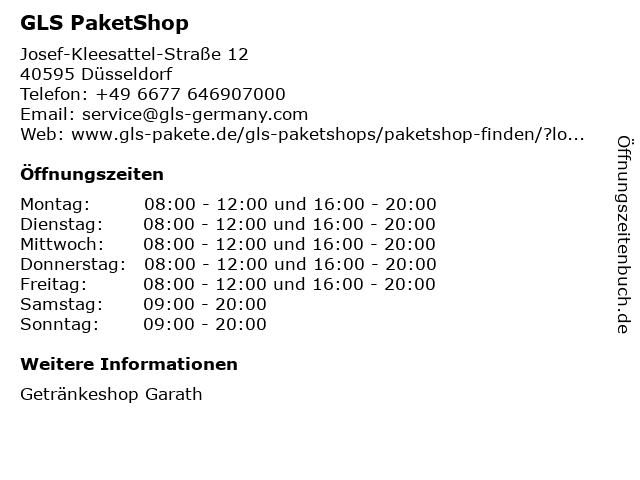 | Öffnungszeiten GLS PaketShop in Düsseldorf anzeigen | |