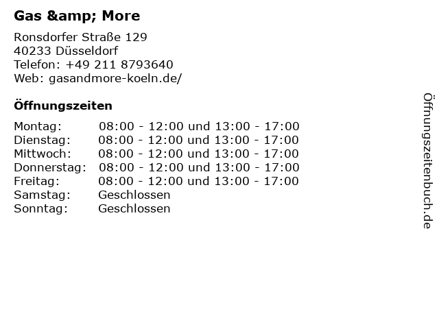 Öffnungszeiten Gas & More in Düsseldorf anzeigen | |