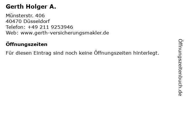 | Öffnungszeiten Gerth Holger A. in Düsseldorf anzeigen | |