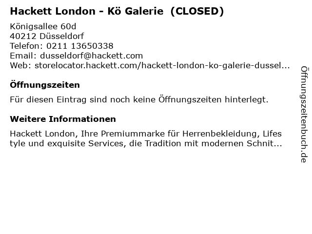 | Hackett London - Kö Galerie (CLOSED) anrufen | |