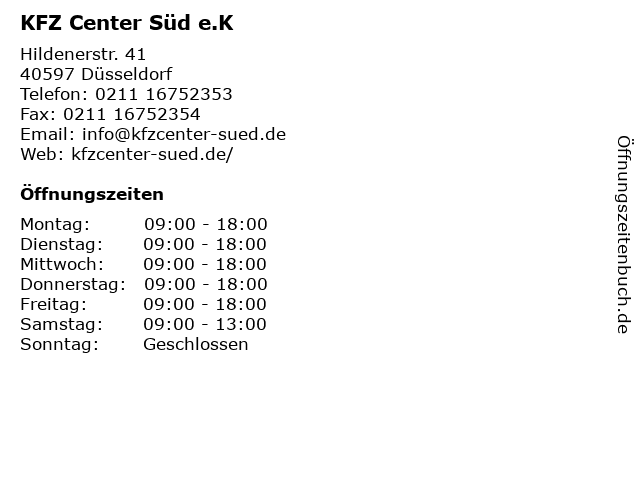 | Öffnungszeiten KFZ Center Süd e.K in Düsseldorf anzeigen | |