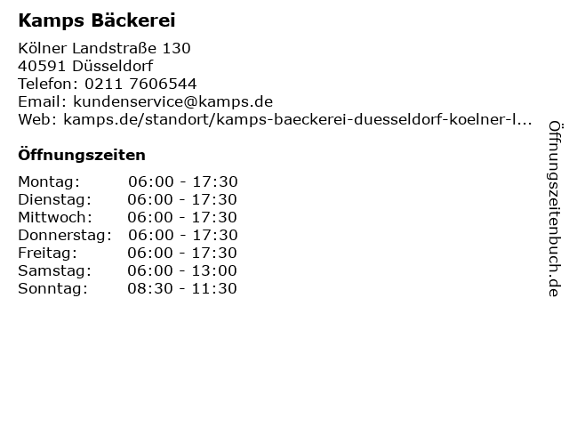 | Öffnungszeiten Kamps Bäckerei in Düsseldorf anzeigen | |