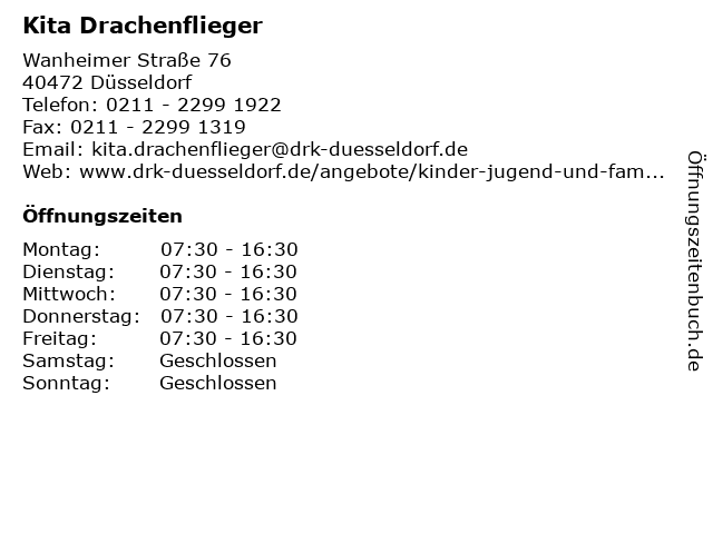 | Öffnungszeiten Kita Drachenflieger in Düsseldorf anzeigen | |