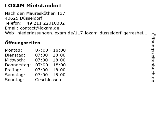 | Öffnungszeiten LOXAM Mietstandort in Düsseldorf anzeigen | |