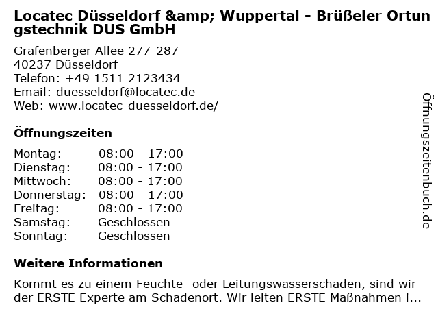 Branchen & Suchbegriffe zu Locatec Düsseldorf & Wuppertal - Brüßeler Ortungstechnik DUS GmbH:brüßeler, dus, feuchte wand, feuchteschaden, leck, leckage, leckortung, leckortung am flachdach, leckortung im außenbereich, leckortung in gebäuden, leitungswasserschaden, locatec, nasse wand, ortungstechnik, rohrbruch, rohrbruch notdienst, rohrbruchortung, wasserschaden, wasserschaden melden |
