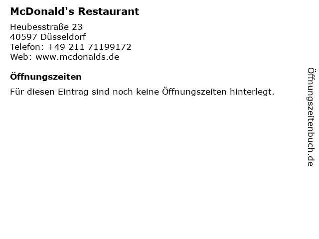 | Öffnungszeiten McDonald's Restaurant in Düsseldorf anzeigen | |