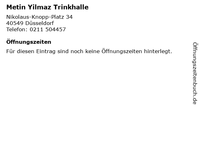 | Öffnungszeiten Metin Yilmaz Trinkhalle in Düsseldorf anzeigen | |