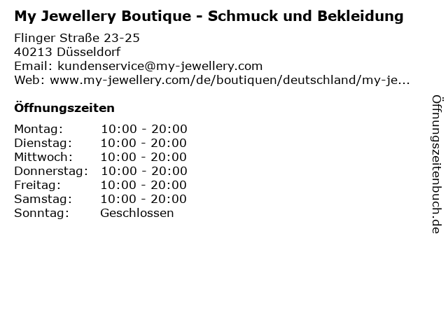 | Öffnungszeiten My Jewellery Boutique - Schmuck und Bekleidung in Düsseldorf anzeigen | |