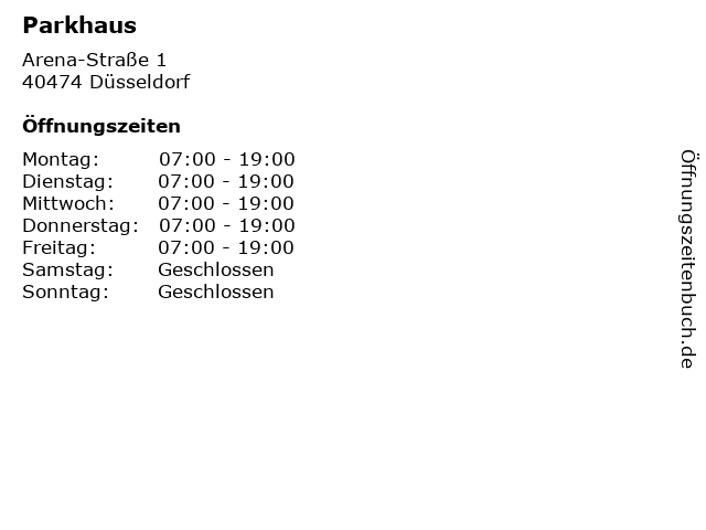 | Öffnungszeiten Parkhaus in Düsseldorf anzeigen | |