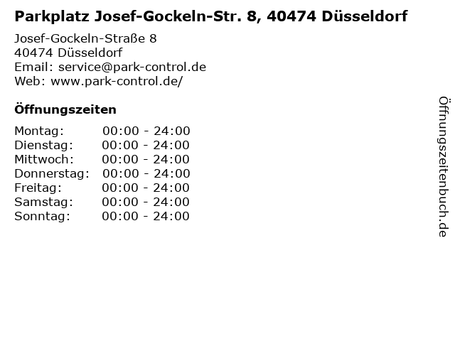 | Öffnungszeiten Parkplatz Josef-Gockeln-Str. 8, 40474 Düsseldorf in Düsseldorf anzeigen | |