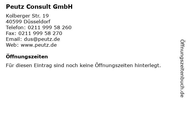 | Öffnungszeiten Peutz Consult GmbH in Düsseldorf anzeigen | |