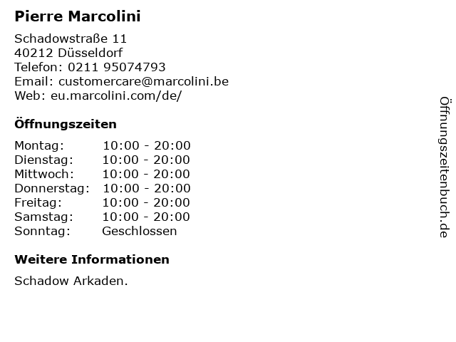 | Öffnungszeiten Pierre Marcolini in Düsseldorf anzeigen | |