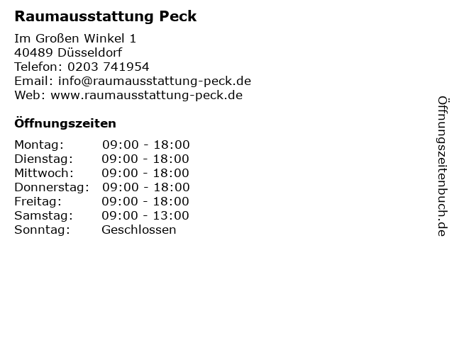 | Öffnungszeiten Raumausstattung Peck in Düsseldorf anzeigen | |