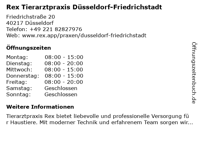 Branchen & Suchbegriffe zu Rex Tierarztpraxis Düsseldorf-Friedrichstadt:rex, tierarzt, tierarztpraxis, tierarztpraxisdüsseldorf |