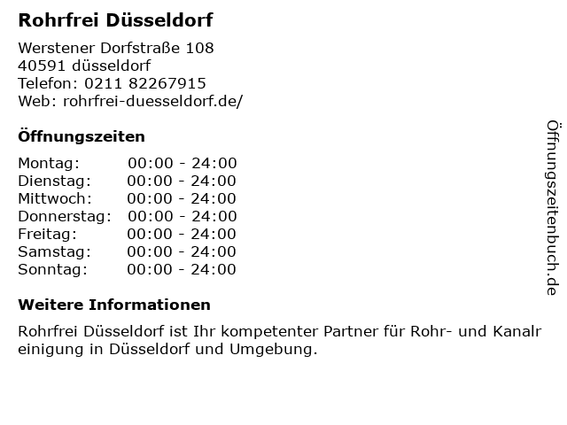 | Öffnungszeiten Rohrfrei Düsseldorf in düsseldorf anzeigen | |