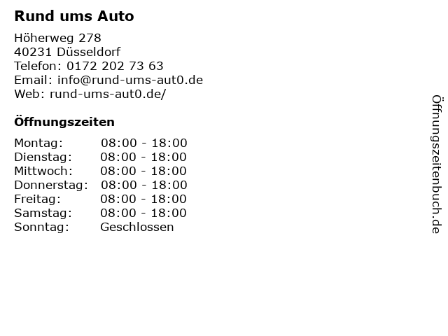 | Öffnungszeiten Rund ums Auto in Düsseldorf anzeigen | |