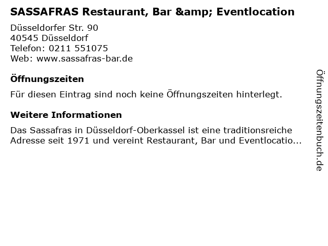 | SASSAFRAS Restaurant, Bar & Eventlocation anrufen | |