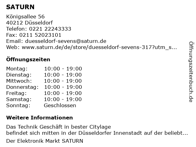 SATURN in Düsseldorf: Telefonnummer, Öffnungszeiten und Adresse
