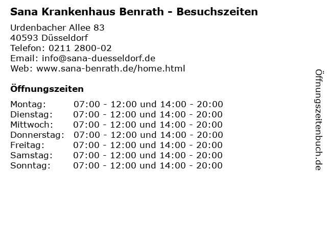 Branchen & Suchbegriffe zu Sana Krankenhaus Benrath - Besuchszeiten:benrath, besuchszeiten, klinik, krankenhaus, sana, spital |