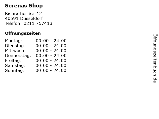 | Öffnungszeiten Serenas Shop in Düsseldorf anzeigen | |