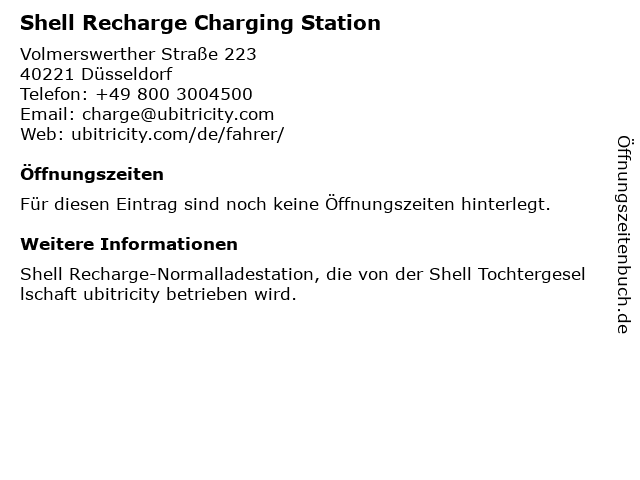 Shell Recharge Charging Station in Düsseldorf | Telefonnummer, Öffnungszeiten und Adresse