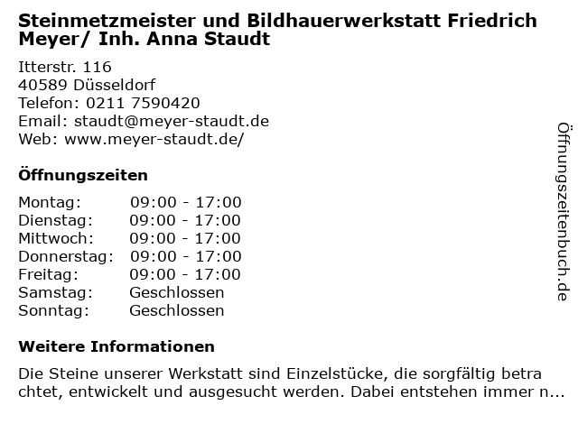 Branchen & Suchbegriffe zu Steinmetzmeister und Bildhauerwerkstatt Friedrich Meyer/ Inh. Anna Staudt:anna, bildhauerwerkstatt, friedrich, meyer/, staudt, steinmetzmeister |