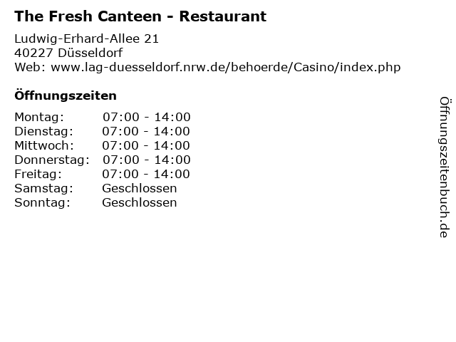 | Öffnungszeiten The Fresh Canteen - Restaurant in Düsseldorf anzeigen | |