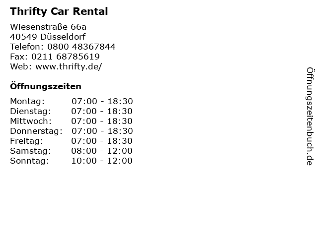 | Öffnungszeiten Thrifty Car Rental in Düsseldorf anzeigen | |