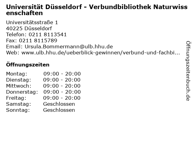 Branchen & Suchbegriffe zu Universität Düsseldorf - Verbundbibliothek Naturwissenschaften:bibliothek naturwissenschaft, naturwissenschaften, uni düsseldorf bibliothek, universität, verbundbibliothek, verbundbibliothek naturwissenschaft hhu |
