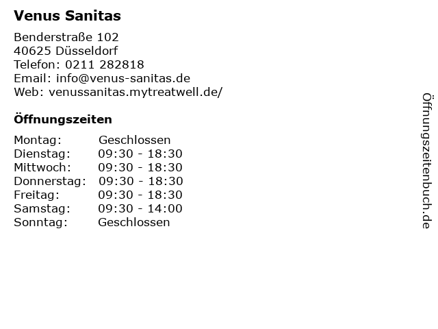 Öffnungszeiten Venus Sanitas in Düsseldorf anzeigen | |