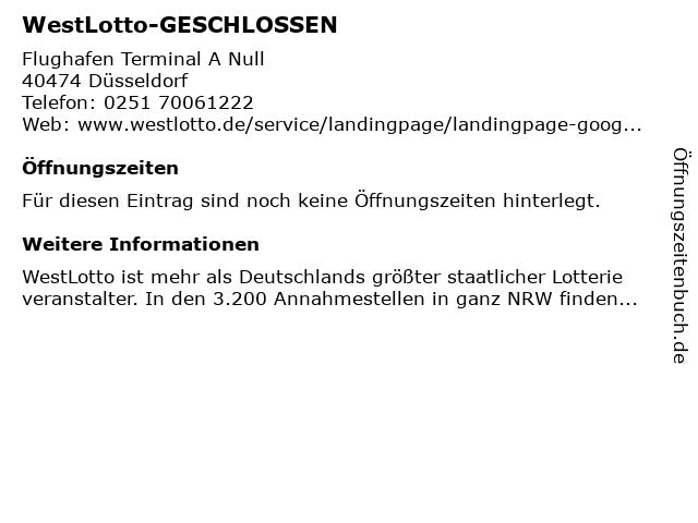 Öffnungszeiten WestLotto-GESCHLOSSEN in Düsseldorf anzeigen