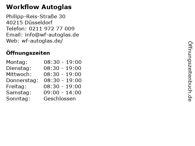 | Öffnungszeiten Workflow Autoglas in Düsseldorf anzeigen | |