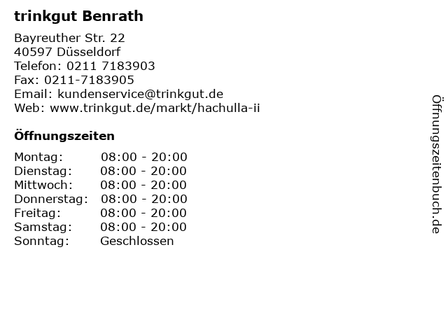 | Öffnungszeiten trinkgut Benrath in Düsseldorf anzeigen | |
