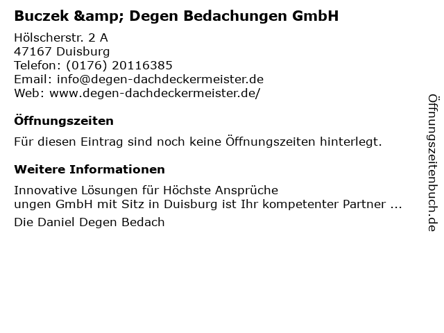 | Buczek & Degen Bedachungen GmbH anrufen | |