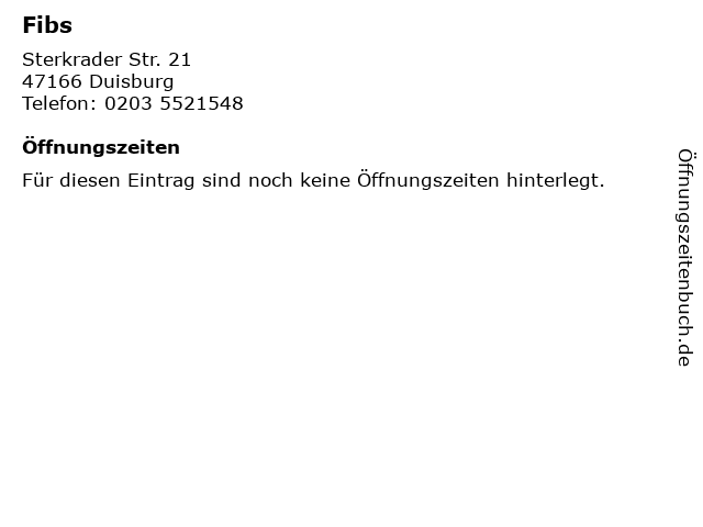 | Öffnungszeiten Fibs in Duisburg anzeigen | |