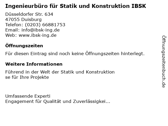 | Ingenieurbüro für Statik und Konstruktion IBSK anrufen | |