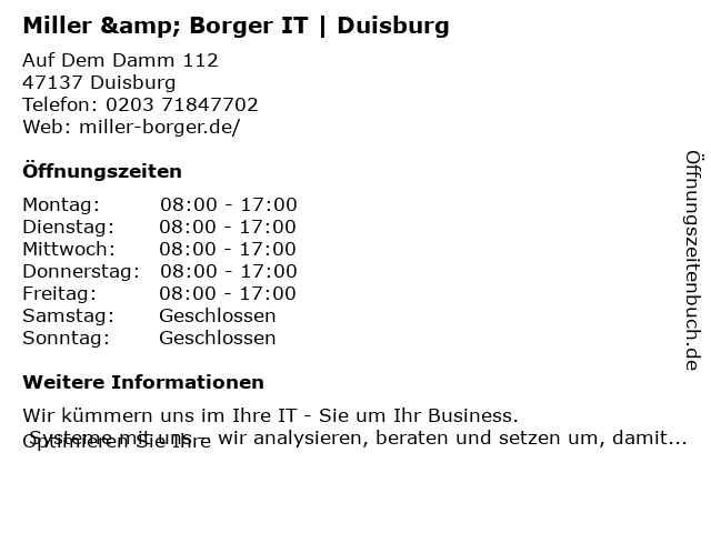 Branchen & Suchbegriffe zu Miller & Borger IT | Duisburg:borger, it, miller |