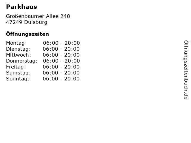 Öffnungszeiten Parkhaus in Duisburg anzeigen