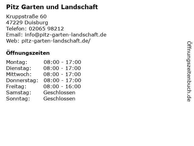 | Adresse Pitz Garten und Landschaft in Duisburg anzeigen |