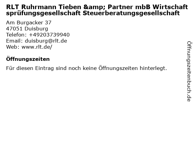 | RLT Ruhrmann Tieben & Partner mbB Wirtschaftsprüfungsgesellschaft Steuerberatungsgesellschaft anrufen | |