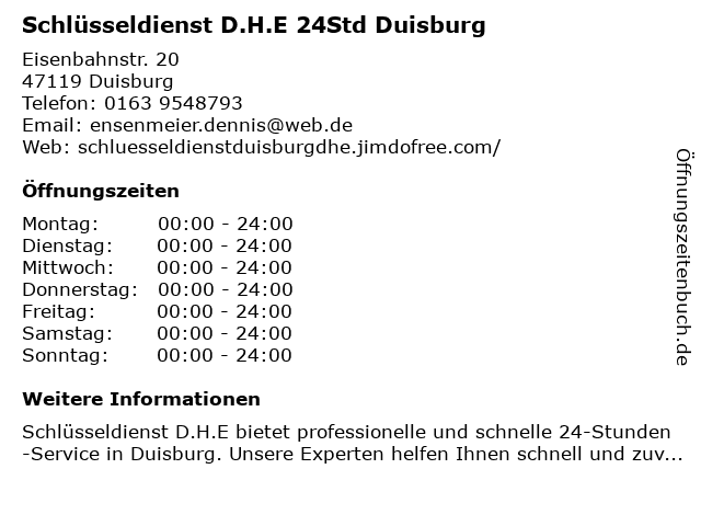 Branchen & Suchbegriffe zu Schlüsseldienst D.H.E 24Std Duisburg:24std, d.h.e, schlüsseldienst |