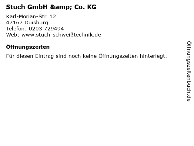 | Öffnungszeiten Stuch GmbH & Co. KG in Duisburg anzeigen | |