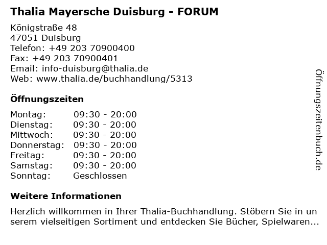 Branchen & Suchbegriffe zu Thalia Mayersche Duisburg - FORUM:bestseller, bookshop, buchhandlung duisburg, buchladen, bücher, ebooks, forum, mayersche, spielwaren, thalia, thalia buchhandlung, thalia duisburg |