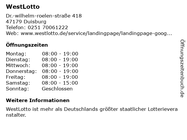 Öffnungszeiten WestLotto in Duisburg anzeigen
