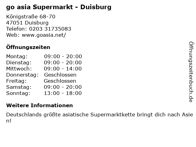 Branchen & Suchbegriffe zu go asia Supermarkt - Duisburg:asia, go, supermarkt, supermärkte |