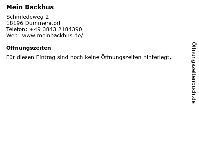 | Öffnungszeiten Mein Backhus in Dummerstorf anzeigen | |