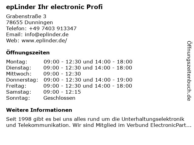 Branchen & Suchbegriffe zu epLinder Ihr electronic Profi:electronic, ep, eplinder, fernseher, festnetz, freenet, handy, ihr, mobilfunk, multimedia, profi, satellitentechnik, service, strom, telekom, tv, unterhaltungselektronik |