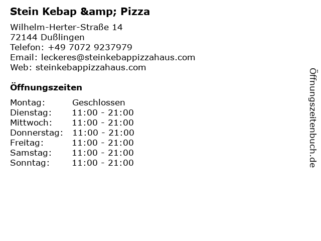 | Adresse Stein Kebap & Pizza in Dußlingen anzeigen |