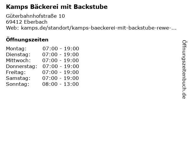 | Öffnungszeiten Kamps Bäckerei mit Backstube in Eberbach anzeigen | |