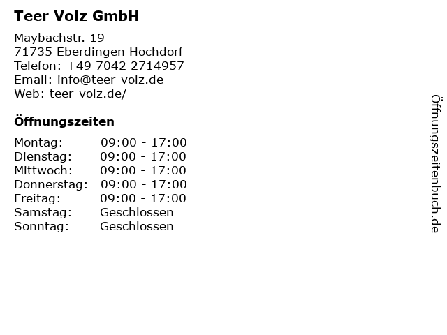 | Öffnungszeiten Teer Volz GmbH in Eberdingen Hochdorf anzeigen | |